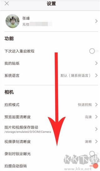 2、跳轉(zhuǎn)至設置頁面后,可見多種分類設置項,此時需要向下滑動屏幕。
