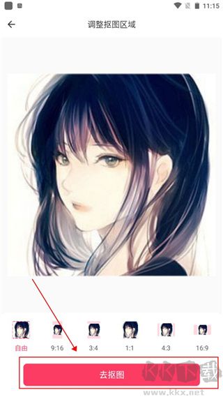 3、選定圖片后選擇喜歡的樣式,點擊去摳圖;
