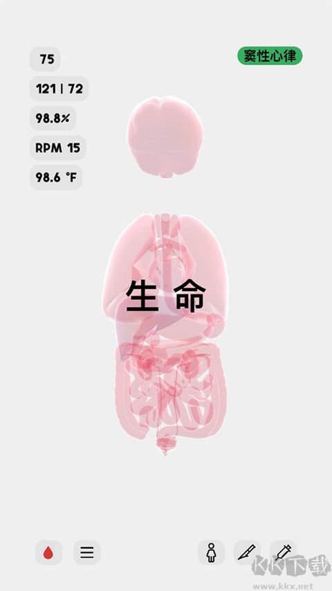 生命人體模擬器,英文名稱為life,是一款人體器官模擬應(yīng)用,利用三維建模技術(shù)真實(shí)再現(xiàn)了心臟、肺臟等身體各部分的運(yùn)行狀態(tài),你可以觀察在行走、睡眠、奔跑等不同場景中,自身內(nèi)部器官的工作情況,查看其他行為、情緒與病癥對(duì)機(jī)體的作用,學(xué)習(xí)更多健康知識(shí)。