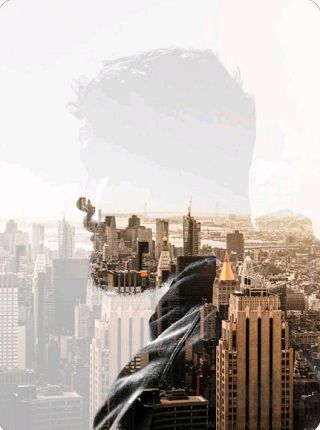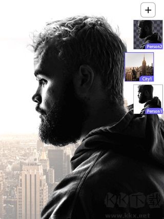 2、首先添加兩張照片,人物為底圖,城市為混合素材
