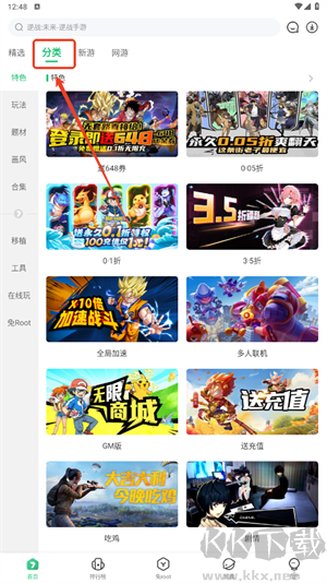 2、點(diǎn)擊分類,挑選感興趣的游戲類型;
