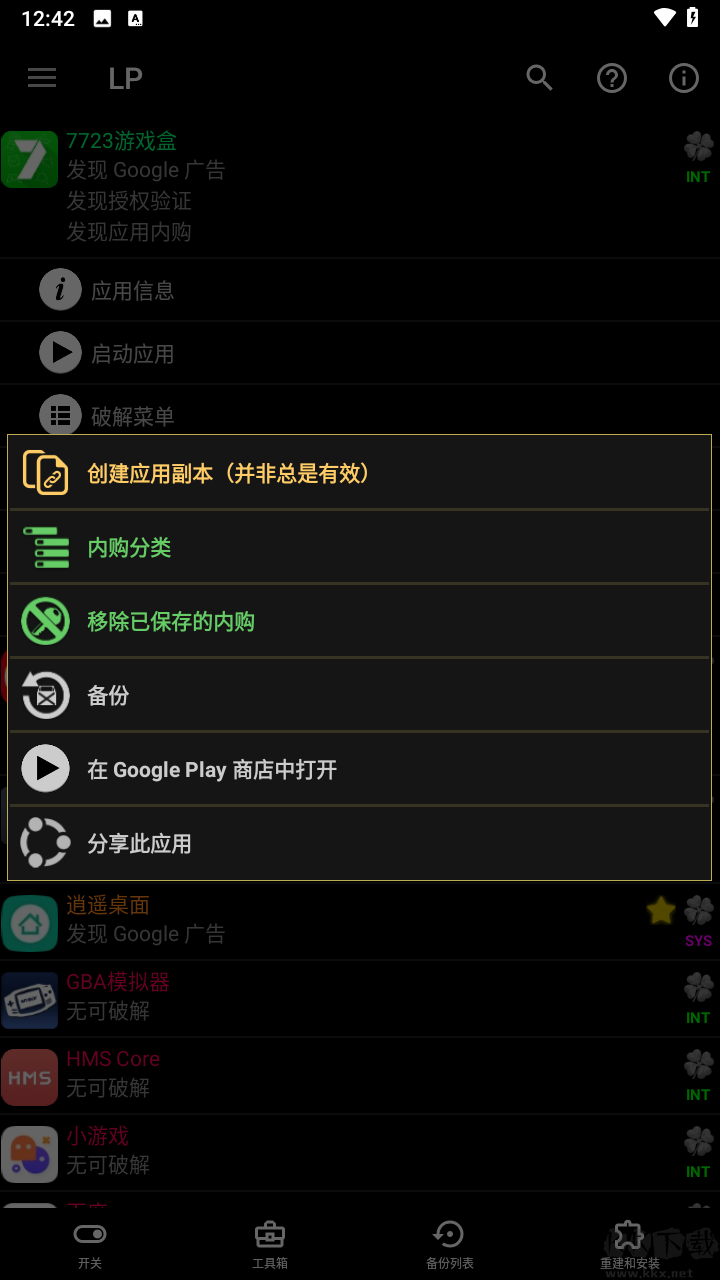 11、創(chuàng)建破解后的修改版 APK,生成到 /sdcard/LuckyPatcher/Modified/。