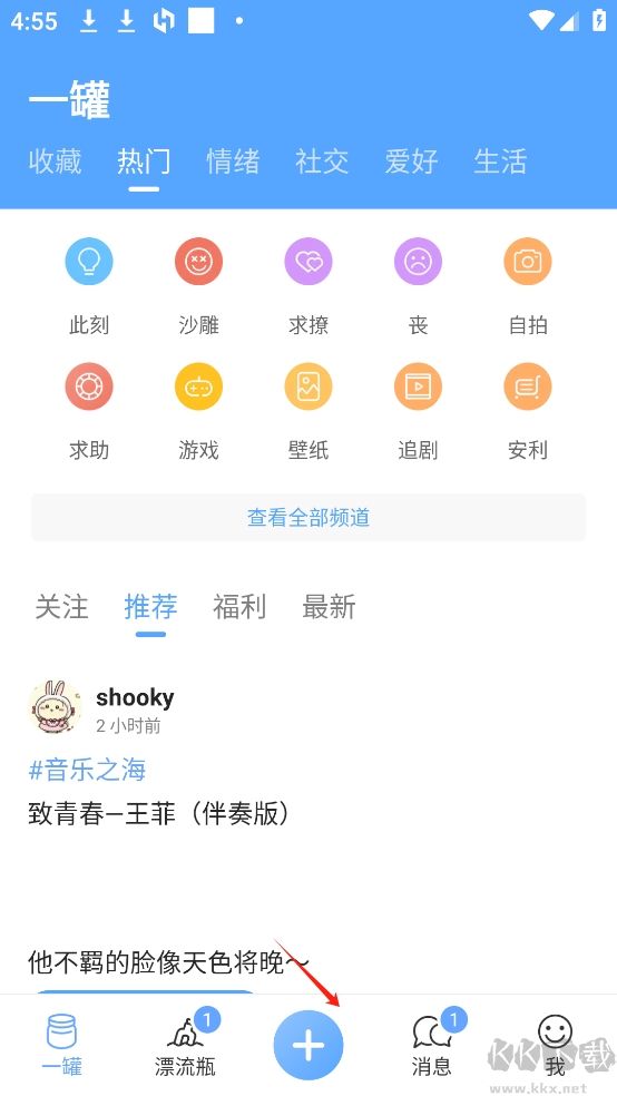 一罐的社區(qū)分為四個(gè)部分:情緒、互動(dòng)、愛好和生活。每個(gè)部分包含多個(gè)不同主題的頻道,進(jìn)入后所見內(nèi)容均由系統(tǒng)隨機(jī)推送,用戶之間無法主動(dòng)查找或定位他人。