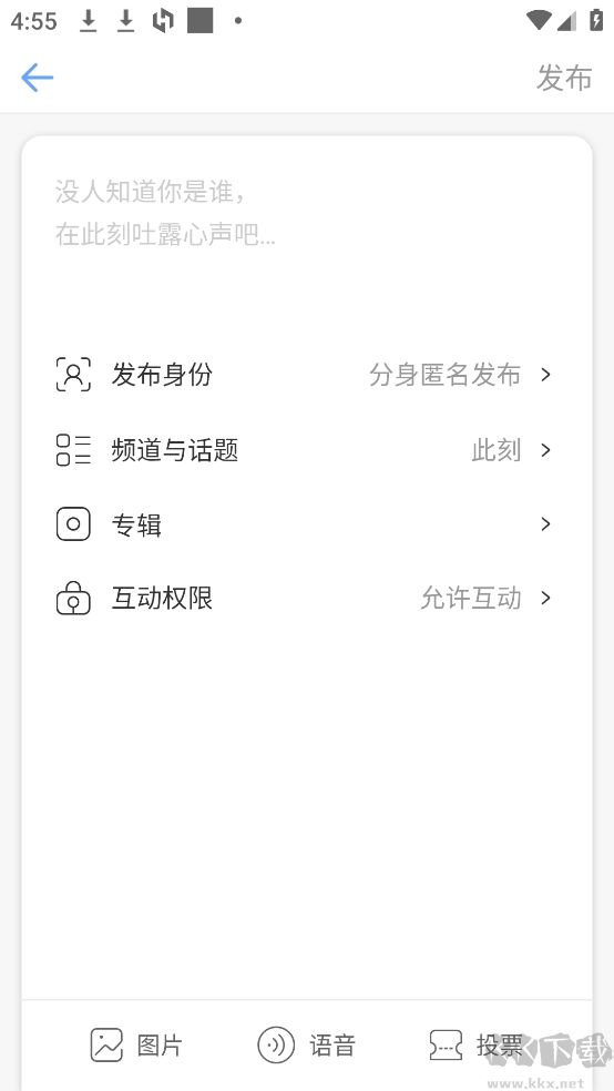 2、匿名交流無痕跡,無人知曉你的真實(shí)身份,也無法查看你的個(gè)人空間。