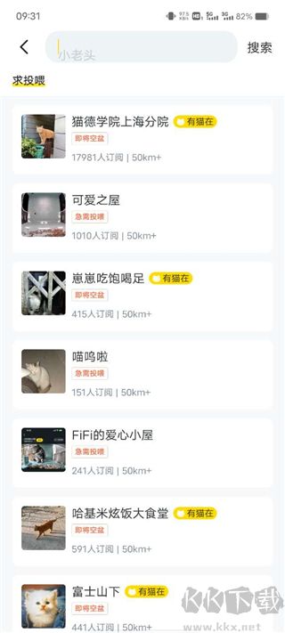 哈啰街貓app是一款流浪貓領(lǐng)養(yǎng)的社交軟件。通過(guò)貓屋直播間,遠(yuǎn)程投喂流浪貓、狗、刺猬、松鼠等小動(dòng)物,幫助改善流浪動(dòng)物的生存環(huán)境。軟件聚集的都是愛(ài)貓人士,不僅能在貓友圈和大家交流、分享心得,還能搜索到各類貓屋,只需要點(diǎn)擊對(duì)應(yīng)貓屋,就能觀看流浪貓咪的吃播,還可以捐贈(zèng)自己的貓糧投喂流浪貓。喜歡的朋友快來(lái)下載試試吧!