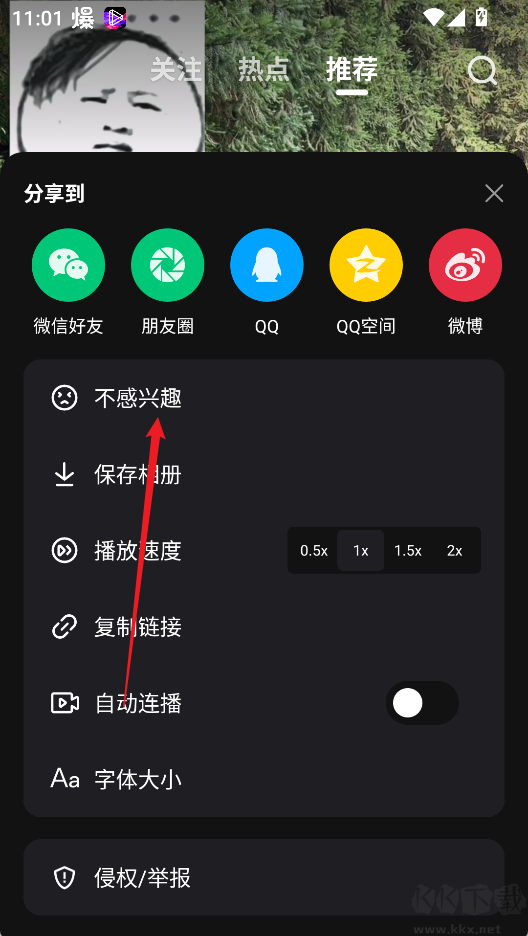 2、當(dāng)彈窗選項(xiàng)出現(xiàn)后,點(diǎn)擊“不感興趣”,系統(tǒng)就會(huì)根據(jù)反饋逐漸優(yōu)化推薦內(nèi)容。