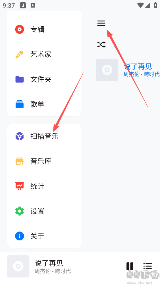 2、具備本地音樂掃描功能,自動識別手機存儲中的音頻文件,并按歌曲、歌手、專輯等方式分類整理;
