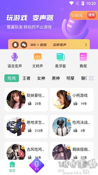 1、打開tt變聲器,進(jìn)入之后可以在主界面當(dāng)中找到自己喜歡的語音包類型。