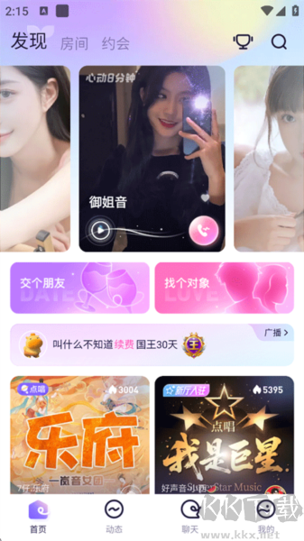 氧氣語音app是一個充滿活力的聲音樂園,將趣味游戲與日常休閑巧妙融合,在這里能加入各式主題房間,暢聊熱門攻略,隨時組隊競技,還可以遇見心動伙伴,享受高清通話的親密交流,還聚集了許多歌唱達人,每日在線獻聲,歌曲資源無比豐富,隨心點播,如果厭倦單人游玩,不妨相約伙伴,休息時更能欣賞美妙音樂。