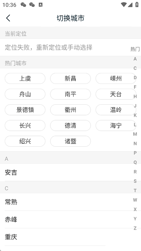 3、您可以自動定位到所在城市,也可以在下方手動選擇。