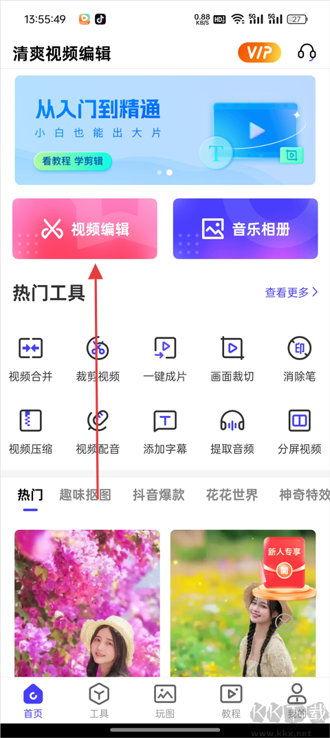 1、點擊首頁位置的視頻編輯