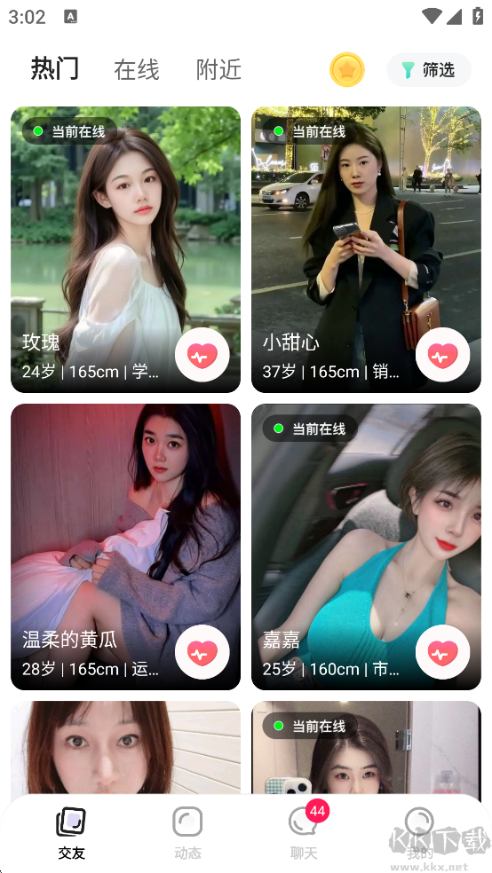 左滑跳過(guò)、右滑心動(dòng),系統(tǒng)根據(jù)個(gè)人偏好智能推薦,支持單向好感操作,對(duì)方不會(huì)察覺(jué)你的選擇,只有當(dāng)彼此都表示喜歡時(shí),才會(huì)自動(dòng)匹配成為親密好友,減少尷尬,提升交友效率。