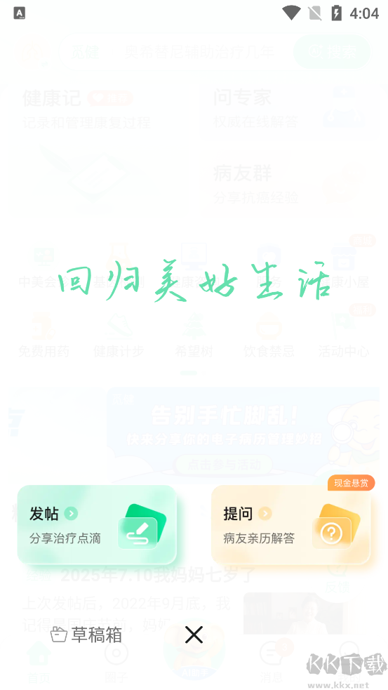 新增病友互助問答專區(qū),匯集大量真實康復(fù)案例與醫(yī)療咨詢。用戶可隨時提問,由經(jīng)驗豐富的病友或健康達人及時回應(yīng),共同探討治療方案、就醫(yī)資源與康復(fù)技巧,打造溫暖互助的社區(qū)氛圍。