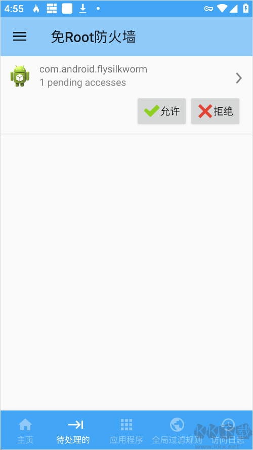 3、在“待處理訪問”列表中,就能看到當(dāng)前請求網(wǎng)絡(luò)權(quán)限的應(yīng)用,根據(jù)需要選擇允許或拒絕即可。