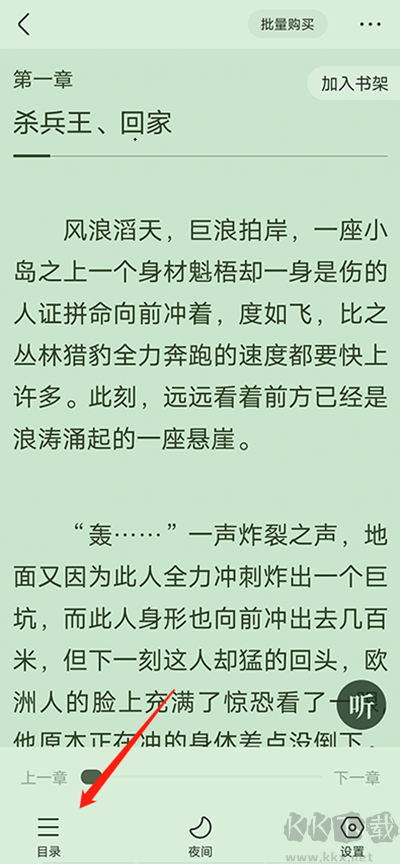 2打開進入小說閱讀,選擇左下角目錄,如圖所示