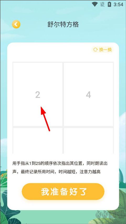 4、點開數(shù)字練習(xí),可從第一關(guān)開啟,練習(xí)采用舒爾特方格,用手指按 1-25 的順序依次指出對應(yīng)位置,同時大聲讀出,最終記錄消耗時長,時長越短注意力越集中。