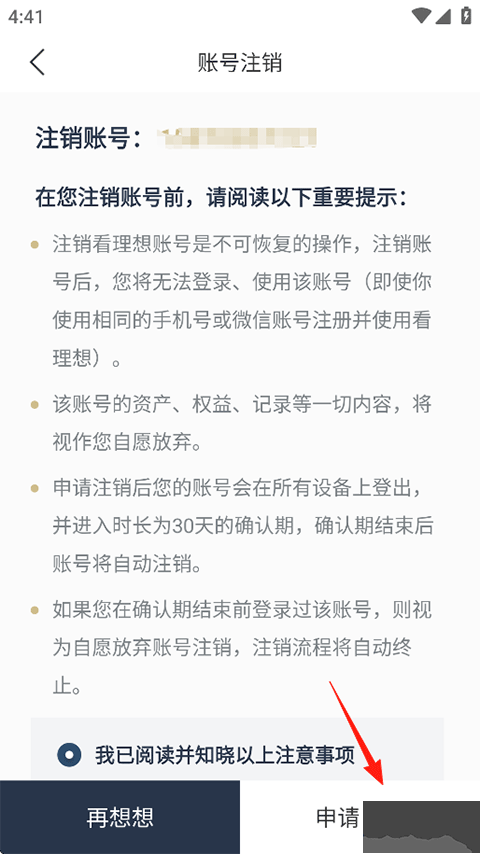 4、在賬號注銷頁面點擊右下角的申請注銷。