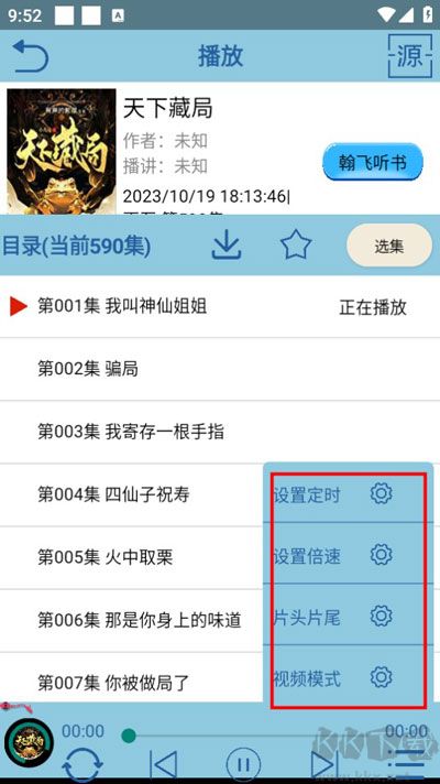 2、在聽書的過程中,你還可以選擇視頻模式,這樣更有沉浸感,包括聽書速度、跳過片頭片尾等都是可以設(shè)置的