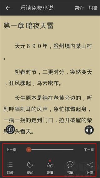 3、點擊屏幕即可呼出菜單,可以在目錄跳到自己想看的章節(jié),夜間模式以及一鍵聽書;