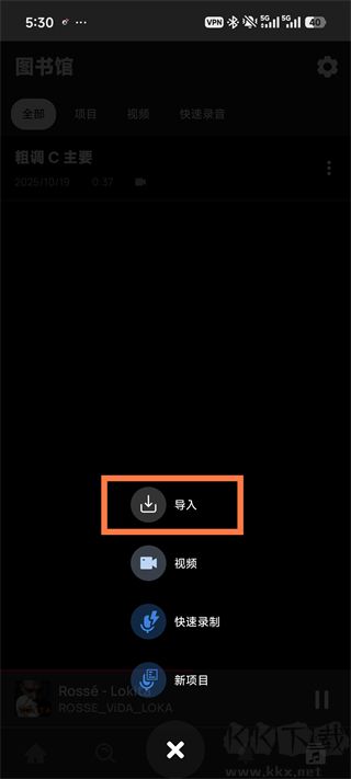 1、打開Voloco,點擊屏幕下方中間的【+號】選擇導入