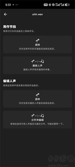 進入“處理現(xiàn)有音頻或視頻”功能,導入視頻文件,選擇需要處理的人聲音軌,添加所需效果后預覽并導出即可。