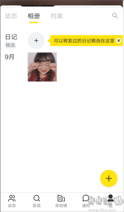 動態(tài)頁:你關(guān)注的朋友更新日記后會出現(xiàn)在動態(tài)頁頂部,點擊頭像會進入對方的個人主頁。