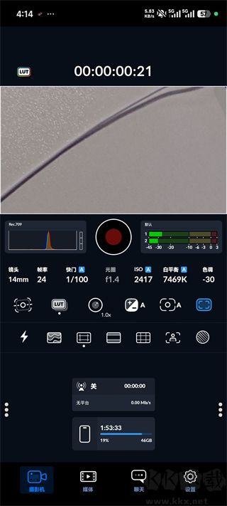 4、根據(jù)拍攝環(huán)境和個人風格,對亮度、曝光、色溫等參數(shù)進行微調(diào),調(diào)整滿意后,點擊中間的錄制按鈕開始拍攝。