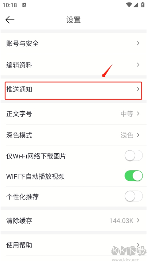 2、打開“設(shè)置”頁(yè)面選擇“推送通知”。