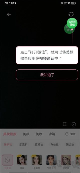 4、完成后,點(diǎn)擊右上方的微信圖標(biāo),跳轉(zhuǎn)到微信后選擇一個好用視頻通話就可以見到效果了。