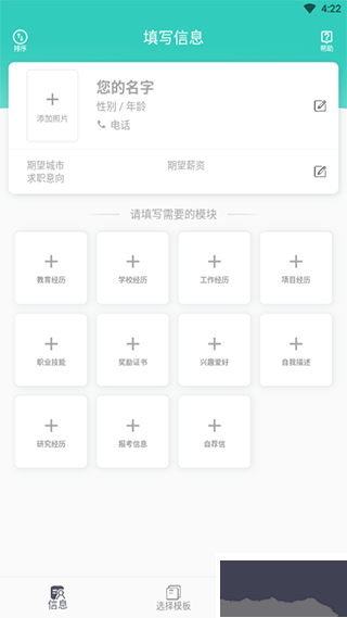 簡(jiǎn)歷預(yù)覽時(shí),沒(méi)有填寫(xiě)的模塊不會(huì)顯示,當(dāng)模塊填寫(xiě)了內(nèi)容后,自動(dòng)就會(huì)顯示出來(lái)。
