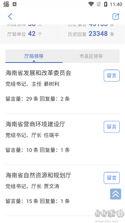 3、南海網(wǎng)App內(nèi)可以選擇給廳級領(lǐng)導(dǎo)或者市縣區(qū)領(lǐng)導(dǎo)留言