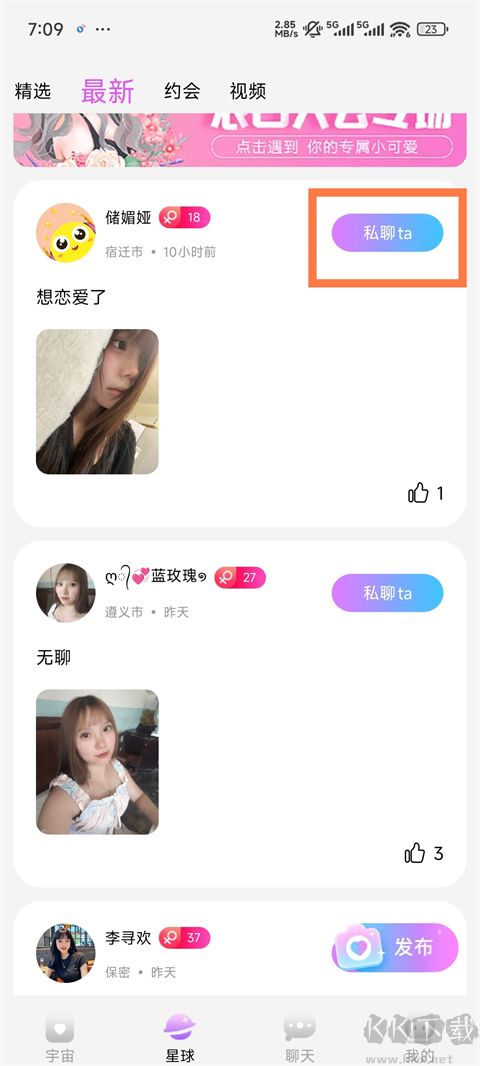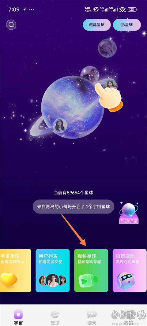 4、如果你不想打視頻,可以點(diǎn)擊星球板塊,這里也有很多漂亮小姐姐,點(diǎn)擊私聊ta