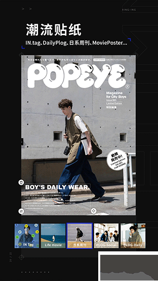 1、包含 IN.tag、DailyPlog、日系周刊、MoviePoster 等多種主題的態(tài)度文本貼紙。