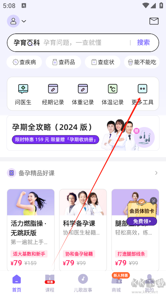 1、打開丁香媽媽App并登錄軟件,點擊更多工具;