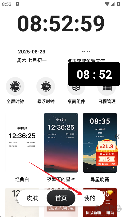 6、海量精美時鐘皮膚可選,還能搭配背景主題,滿足不同用戶的審美偏好。