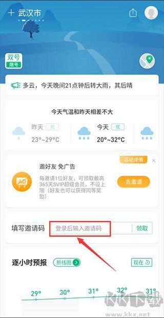 2、逐小時(shí)預(yù)報(bào)上方就是填寫邀請(qǐng)碼的地方了,但是需要登陸后才可進(jìn)行操作。