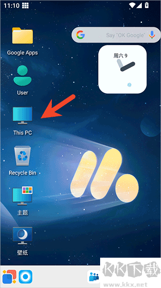 1、安裝完成后就能把你的手機(jī)桌面變成 windows 樣式了,之后點(diǎn)擊我的電腦。