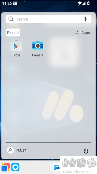 4、回到啟動器的桌面上,點(diǎn)擊左下角的開始菜單后,就會把手機(jī)上的應(yīng)用全部像電腦那樣進(jìn)行展示和使用。