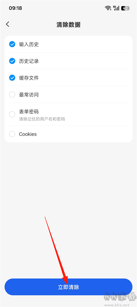 4、選擇要清理的數(shù)據(jù),然后點(diǎn)擊【立即清除】
