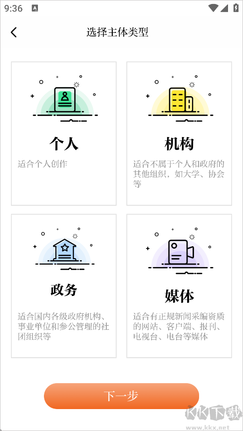 3、軟件內(nèi)提供了四種發(fā)布主體類(lèi)型,大家根據(jù)實(shí)際情況選擇