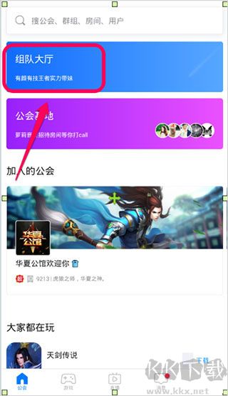 1、完成注冊(cè)登錄后,在主頁(yè)面找到“組隊(duì)大廳”入口,點(diǎn)擊進(jìn)入。