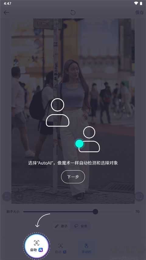 5、點(diǎn)擊手動(dòng),使用者需要畫刷手動(dòng)選擇對(duì)象然后刪除即可。