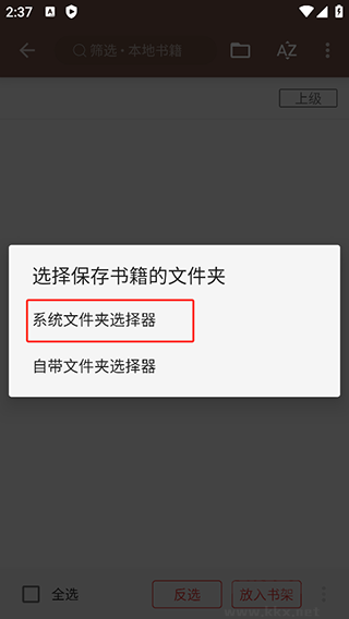 5、支持本地TXT、EPUB格式閱讀,提供手動(dòng)選擇文件路徑和自動(dòng)掃描書(shū)籍功能。