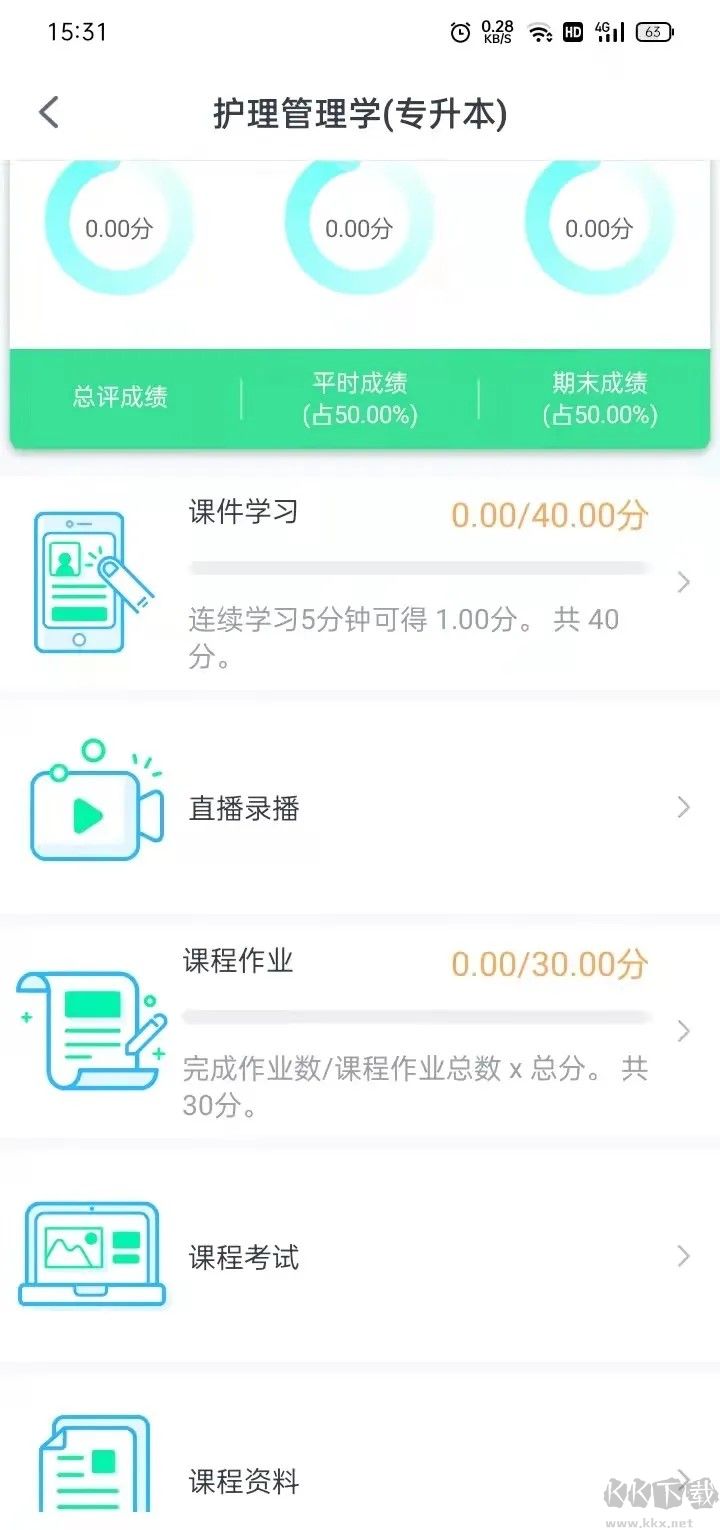 2、成功登入后,進入“學(xué)習(xí)”欄目,可查閱本學(xué)期需修讀的科目,選擇具體科目后,點選“課件學(xué)習(xí)”即可收聽課程,每門課收聽需達(dá)到120分鐘,時長可累計。學(xué)習(xí)界面配有進度指示,進度達(dá)到滿分,即視作本環(huán)節(jié)結(jié)束。