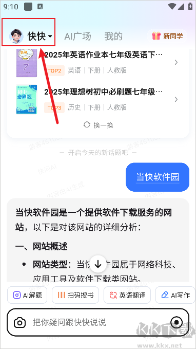 1、進(jìn)入快問AI之后,點(diǎn)擊左上角的角色按鈕。