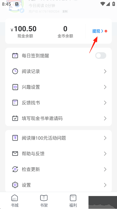 1、打開飛讀小說APP,點擊我的-提現(xiàn);