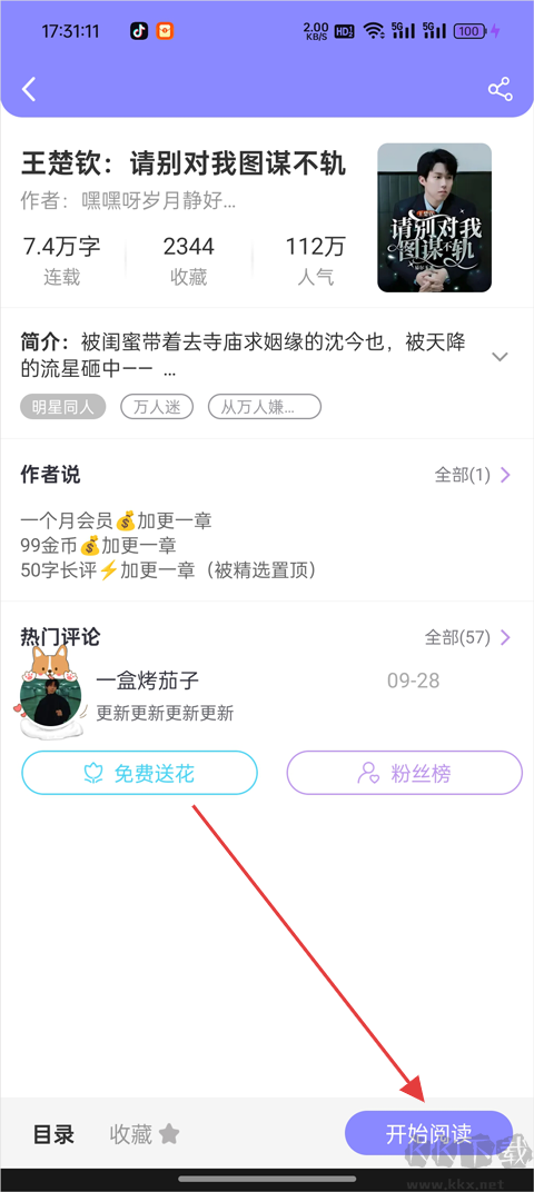 2、點(diǎn)擊頁(yè)面右下角的【開始閱讀】進(jìn)入小說正文;