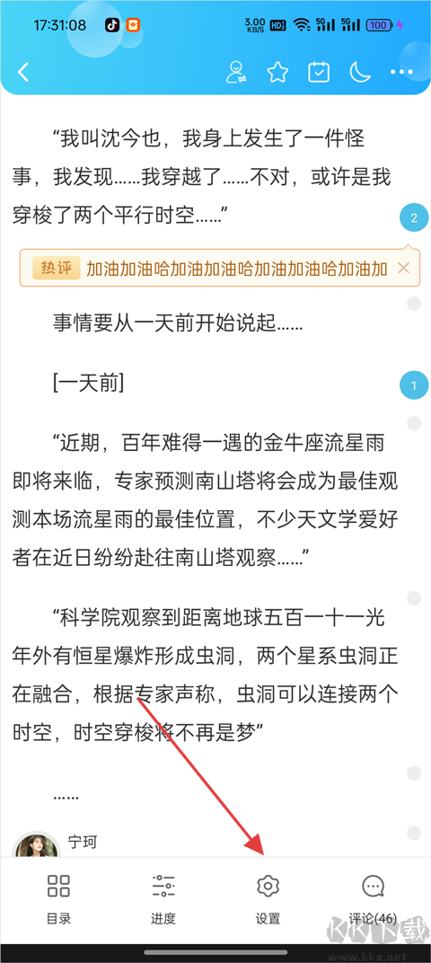 3、在閱讀界面點(diǎn)擊【設(shè)置】選項(xiàng);