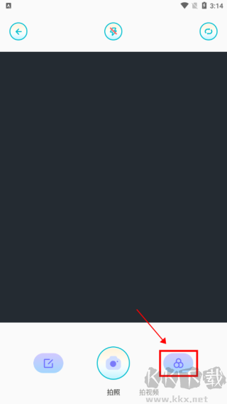 1、打開軟件相機(jī)功能,點(diǎn)擊右下角圖示位置;
