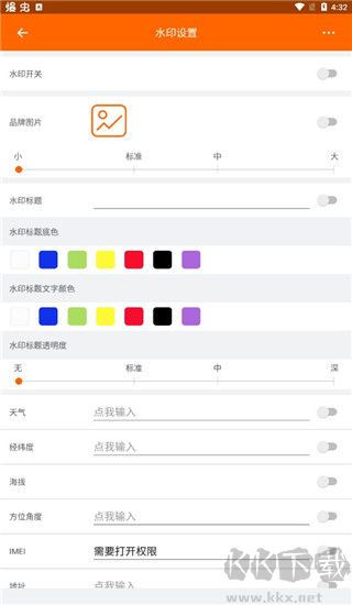 2、在“水印設(shè)置”中設(shè)置水印開關(guān)、天氣、地點(diǎn)、經(jīng)緯度、工程名稱等等。